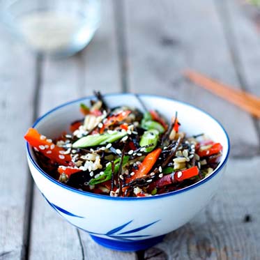 Brown seaweed, which is known as Fucus vesiculosus or bladderwrack, is a salty sea vegetable that’s popular in many cuisines.